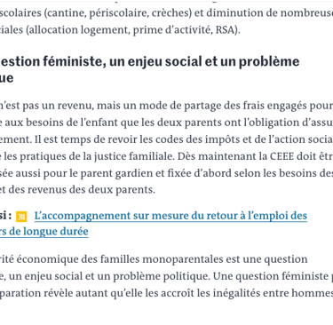 A l'intérieur de ce cadre, nous proposons deux mesures de lutter contre l'appauvrissement systémique des mères après la vie conjugale :